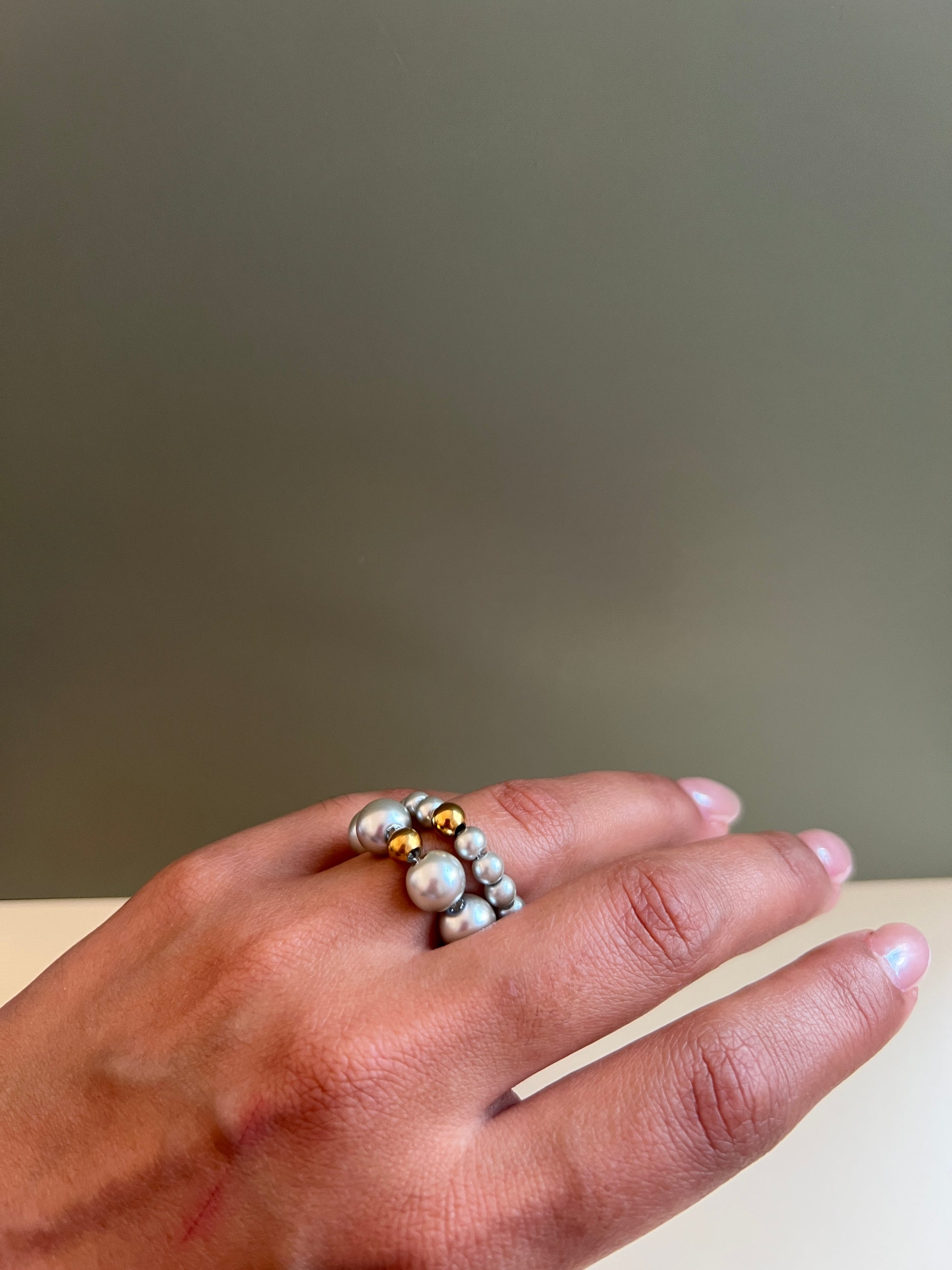 - Perla acrílica y acero inoxidable.
